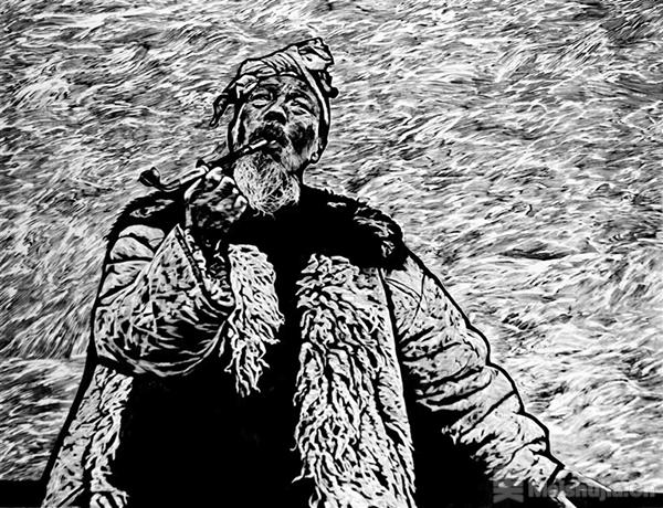 其二,材质。版画语言既不同于以笔作用于纸或布的国画、油画、水彩画和水粉画,也不同于以刀作用于泥或石的雕塑。版画的痕迹仅是一种客观存在,只有与人的主观意愿相结合,与人的符号经验相匹配,才能拥有生命力。材质与工具完成了符号的确认,艺术家对客观痕迹与主观符号进行综合运用,便构成了节律。