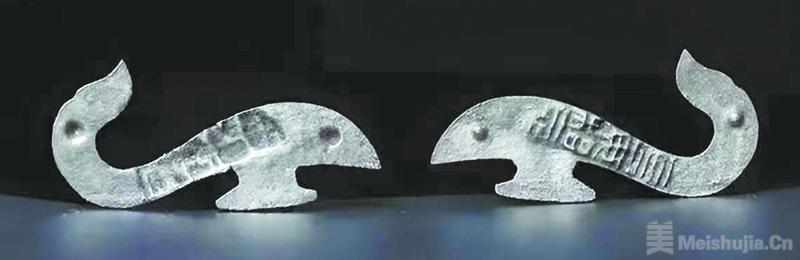 南京博物院收藏的汉代“长毋相忘”银带钩,也是一件充满深情的爱情信物。它出土自大云山汉墓,是江都王刘非送给嫔妃淳于婴儿的定情之物。带钩为龙首形,钩身错金,图案为流畅的圆涡形云气纹,如兵符一般自中间一分为二。两个半扇的内壁,分别以阴阳文刻有“长毋相忘”四字。这动人的情话隐在钩身之间,成为专属于其主人的情意承载。