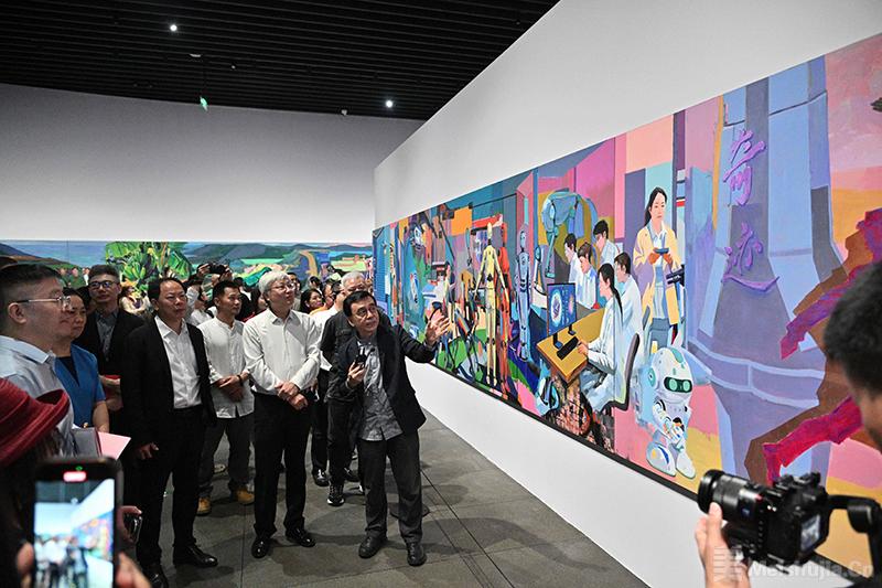 中国美术家协会副主席、广东省美术家协会主席、广州美术学院党委书记林蓝表示,深圳艺术家们以高度的文化自觉和创作热情,携手绘就了高1.8米、总长128米的巨幅油画长卷,用艺术重构特区记忆,再现奋斗历程。这不仅是一件美术作品,更是对深圳45年辉煌历程的深情礼赞,是一次致敬时代、彰显自信的文化实践。