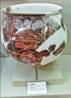 “天汉”观念与昆仑崇拜相同之处在于对太阳的崇拜,或者说对天的崇拜,不同之处主要体现在承载昆仑崇拜的材质变化。邓淑苹、王炜林等认为,华西地区在公元前3500年进入庙底沟文化之后,发展出“天圆地方的宇宙观”和类似巫术的“同类感通”思维,并通过精美陶器呈现。在史前文化中,鸟、虎、熊等动物往往承担着沟通天地、神人的职能。高庙文化、仰韶文化、良渚文化陶器图像中均有“金乌负日”,凌家滩玉器中也有“鸟负日”造型。2001年,甘肃西峪坪遗址出土一件大型的仰韶文化人面纹彩陶罐,庙底沟类型艺术风格浓郁,人面形象几乎占满整个罐体,写实中带有奔放的夸张手法,应为古汉水人普遍崇拜的最高神祇——太阳神。1982年,西和县长道乡宁家庄村出土一件仰韶文化庙底沟类型“彩陶权杖头”,上半部饰弧线勾叶纹,下半部以十字形四分区绘四只背向高飞的变体鸟纹。