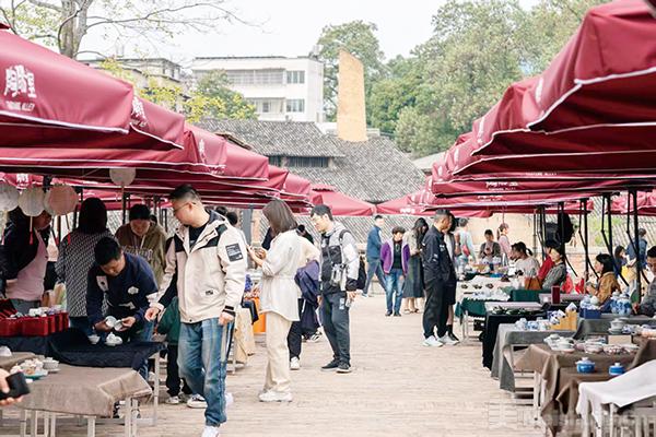 平日里,采茶戏、古彩戏法、艺术展览、老电影放映等融合民俗与现代文化的演出、互动体验活动轮番上演,让里弄间充满烟火气与文化味;去年10月旅游区开展的“汉服免票月”,吸引了大批年轻游客身着传统服饰在龙珠阁、窑砖红墙前打卡。数据显示,陶阳里历史文化旅游区两年来举办文旅活动超7000场,已从单一观光型景区转型为综合消费目的地。