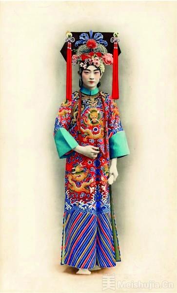 民国时期剧照多为黑白照片,一些彩色照片需要人工上彩,梅兰芳会为自己的戏照上彩,像《四郎探母》的戏照就是梅兰芳亲自上彩。在戏里,他饰演的铁镜公主服饰鲜艳,很受观众喜欢。