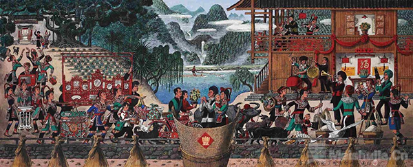 (3/4)庆贺丰收喜迁新居(油画) 96×237厘米 2010年 周令钊