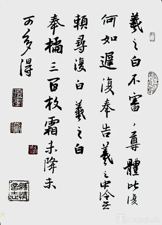 学习书法从某种意义上看,不是为了写好某一个字、某一种字体,或创造出一种与别人不同的面貌。而是在诸多的字与字体中,通过实践的体验,在符合书法审美的原则下,寻找到适于自己舒展情怀的书写方法。中国书画是寻心的艺术,也是展现生命的历程。