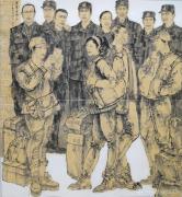 此次展览以“铸牢中华民族共同体意识”为主线,通过一幅幅鲜活的作品,将兵团精神和胡杨精神、老兵精神融入具象的艺术表达,让观众在视觉震撼中感受到兵团历史的厚重与时代发展的脉搏。从魏德友老人的界碑坚守,到新时代青年扎根边疆的身影;从广袤棉田的温暖洁白,到胡杨林的生命金黄……兵团七十余年的奋斗史诗在笔墨色彩中“立”了起来、“活”了起来。