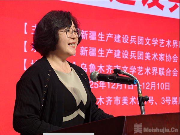玛尔哈巴·哈斯木在致辞中表示,本次展览既是兵地文艺界从“阶段性携手”迈向“常态化深耕”的鲜活见证,也是“兵地一家亲”的深厚情谊与文化融合的生动实践。