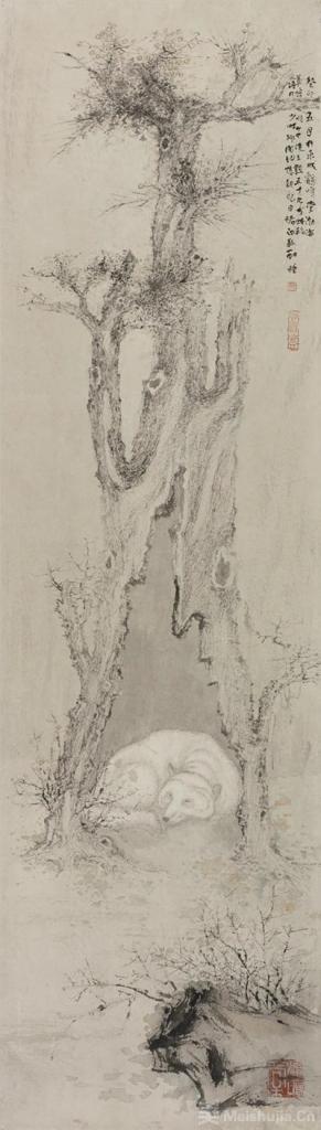 《白狐酣睡》123.5×25cm 纸本设色 2023年