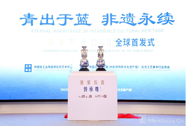 2023年6月11日,第七个文化和自然遗产周,一场中国工艺美术界的盛会——“青出于蓝,非遗永续”《基业长青》传承尊全球首发式在中国工艺美术馆(中国非物质文化遗产馆)隆重举办。活动现场,中国工艺美术协会副会长李节、中国工艺美术馆副馆长杨斌、故宫博物院原副院长陈丽华、中国轻工业陶瓷研究所副所长涂志浩、北京工艺美术行业协会副会长兼秘书长宋印伟、中国陶瓷博物馆原副馆长徐桃生等领导、专家近百人出席该活动,同时该作由以上六大重要文博机构重量级嘉宾共同揭幕。