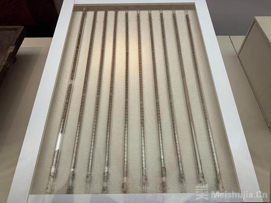 此次展出的《仪礼》简真品长约51厘米,因保存完整、数量大、文献价值高,被誉为“天下第一简”。甘肃省博物馆讲解员党雄伟介绍说:“《仪礼》简是目前出土的汉简中较长的一枚,文化价值高,在汉简中地位尊贵,也是目前所见《仪礼》最古版本,于1959年在甘肃武威市磨咀子汉墓出土,用真空管保护。”