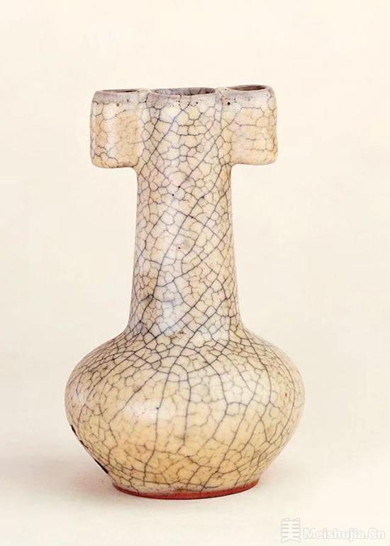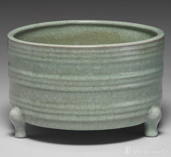 瓷器烧制时,釉面开裂的原因主要有两种:一是成型时坯泥沿一定方向延伸,影响了分子的排列;二是坯、釉膨胀系数不同,焙烧后冷却时胎釉收缩比不一致。这原是瓷器烧制中的一个缺点,但聪明的匠人掌握了开裂的规律,制出的开片釉(即裂纹釉)慢慢成为瓷器的一种特殊装饰,宋代的汝、官、哥窑都有带开片特征的瓷器传世。