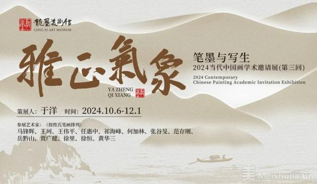 秦皇岛龙玺美术馆年度展览雅正气象(第三回):笔墨与写生——2024当代中国画学术邀请展,将于2024年10月6日隆重启幕。本次展览由著名美术评论家于洋担任策展人,邀请马锋辉、王珂、王伟平、任惠中、祁海峰、何加林、张谷旻、范存刚、岳黔山、贾广健、徐里、徐恒、黄华三(按姓氏笔画排列)等十三位当代画坛名家,携新作力作共襄展览,承续中华文化文人笔墨传统,展现“笔墨当随时代”的新风,以及守正创新,构建新时代中国画的新格局的艺术理想。